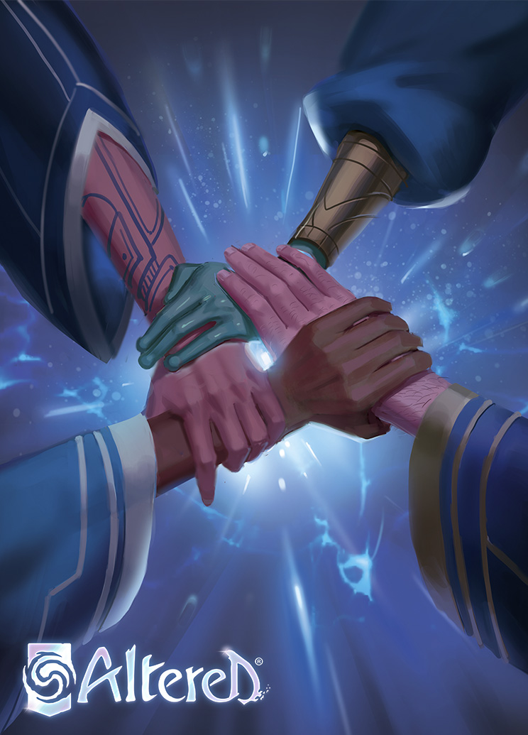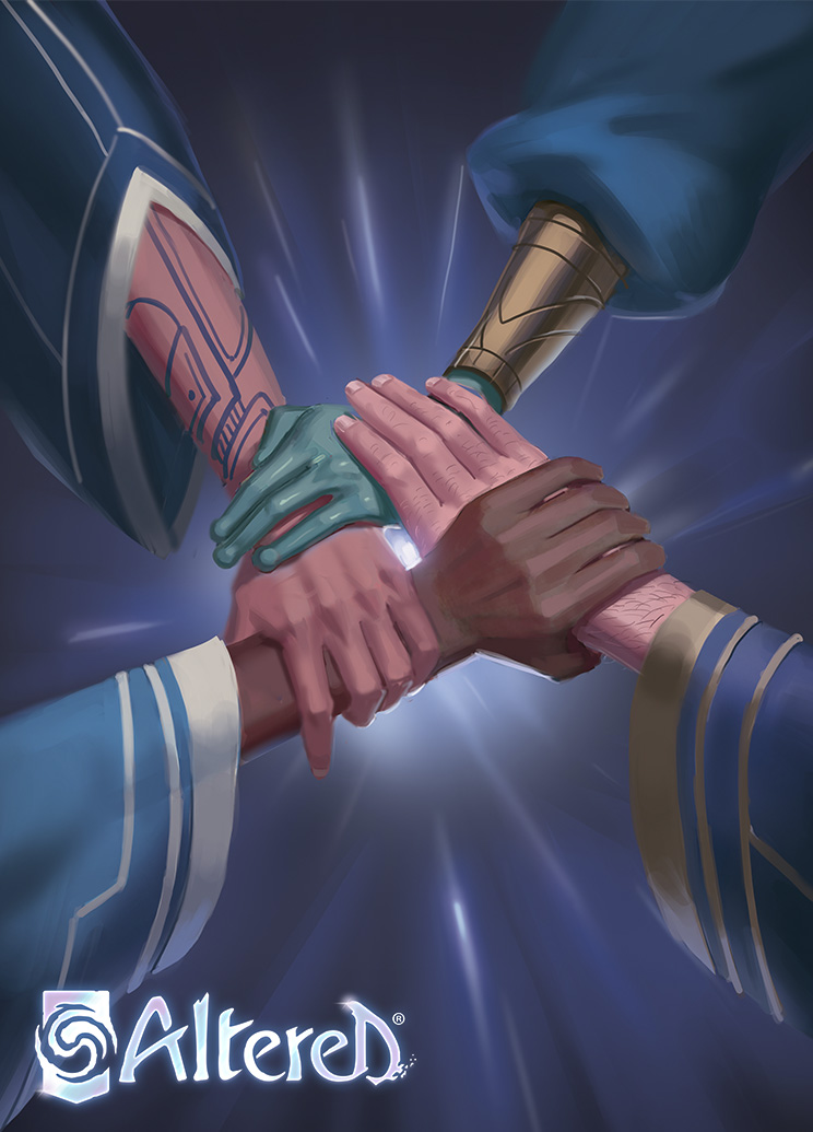 Every season (roughly 4 months) of Altered Organized Play comes with an Adventure Pass in the app. Players choose a faction at the start of the season and every time they play, the Local Game Store, will give them a virtual stamp on their pass, progressing their level. Upon receiving the 5th (common), 10th (rare) and 14th (faction rare) stamp, the alt-art for that rarity and the previously chosen faction is unlocked. The player does not have to play the faction chosen to get the stamp, so players can play multiple factions, but collect stamps for the faction (or art) they like most. Printed versions of the art will be available solely through the Print-on-Demand service.