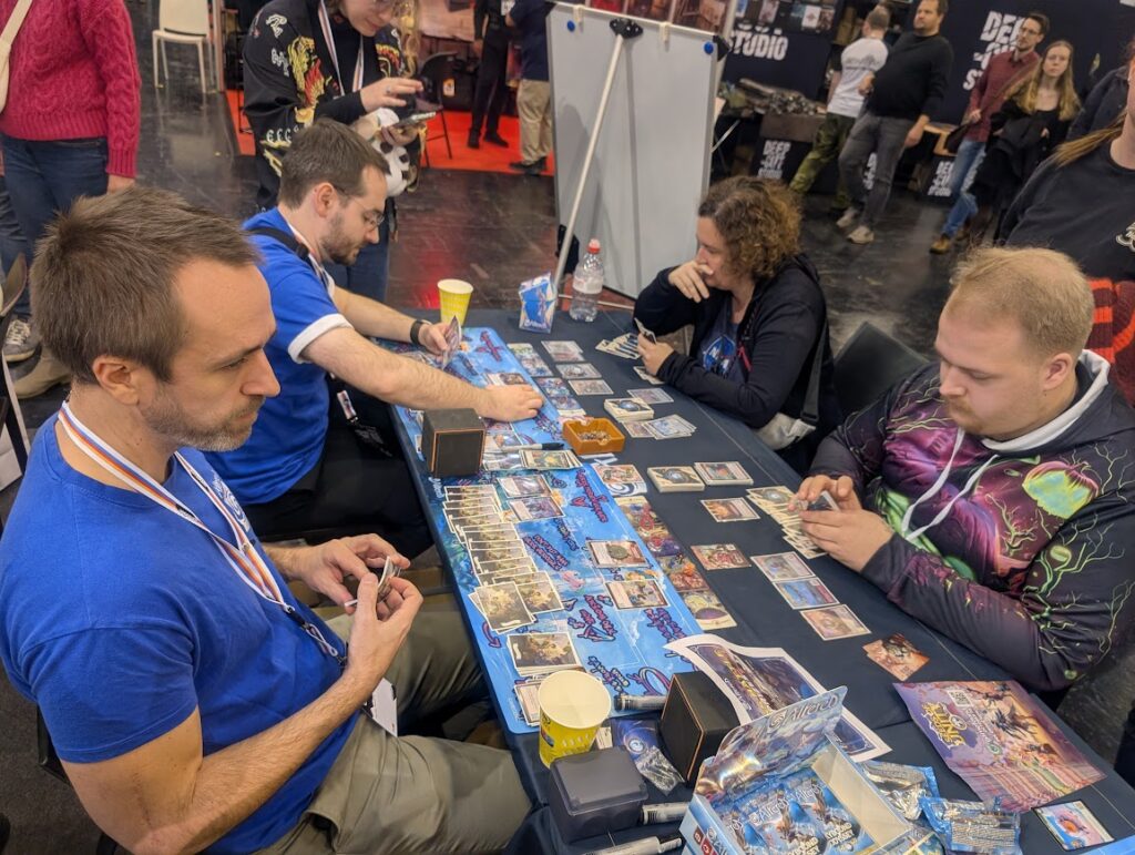 SPIEL Essen is the world’s largest game fair and once again the Equinox team had a big presence there in Hall 1 as part of the asmodee stand to show off the wonders of the game to all and sundry as well as selling Skybound Odyssey boosters and the original starters at the asmodee store. Gaming at the booth went all during the entire four days of the fair from Thursday through to Sunday.