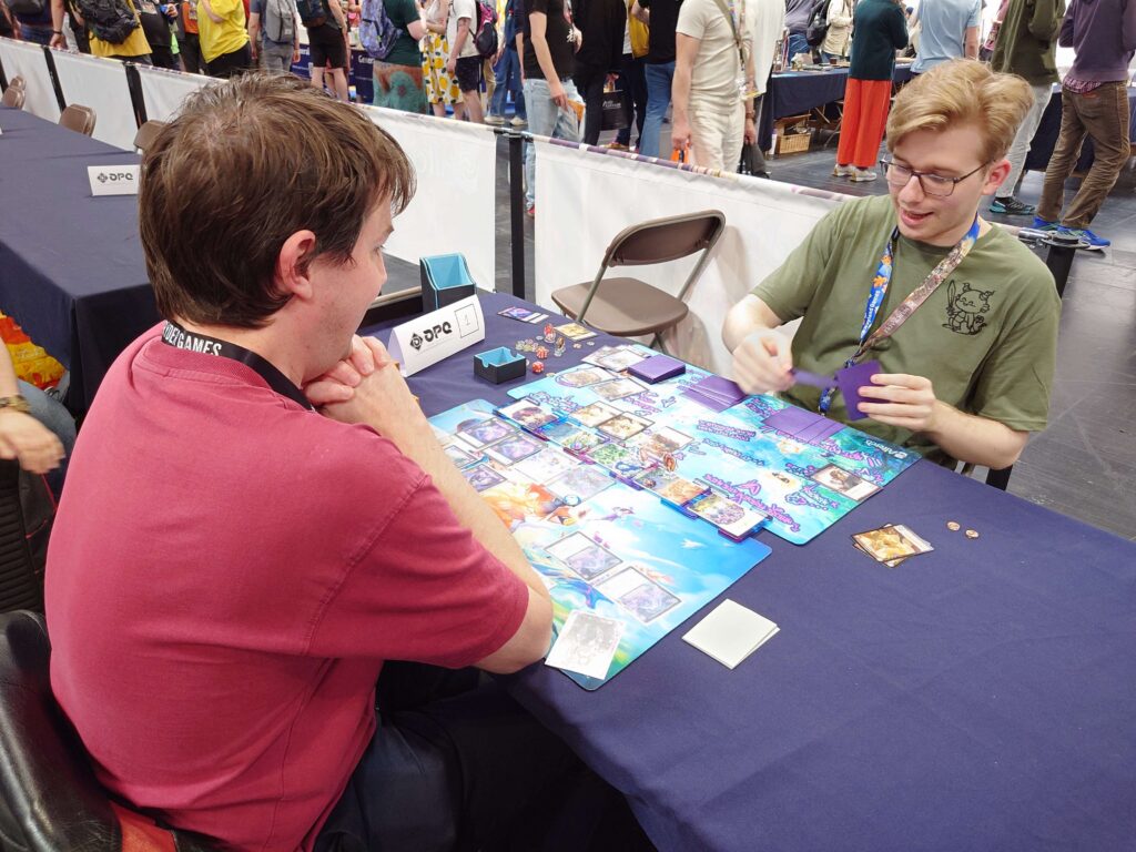 I’m going to start off by saying that the Organised Play team did a fantastic job with all the demos as well as the tournaments. The Asmodee stand ran out of starter decks, so the conversion rate of people doing the demo and then wanting to get their own cards to play with was really good. So, a big congratulations to Morgane and the team in the demo area for doing such a bang-up job on the demos.