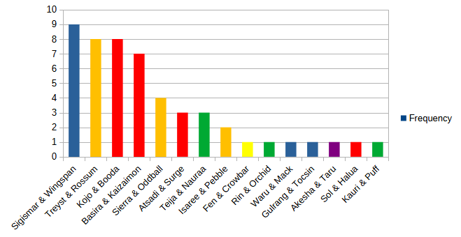Among SKY’s new heroes, all six saw some competitive play in October. Sol took the lead, but players worked with Moyo next most often, at nearly the same rate as Isaree. Kauri and Nadir similarly paired off a little further down the line, with Zhen the only one of the cohort who took less than 2% of distribution.