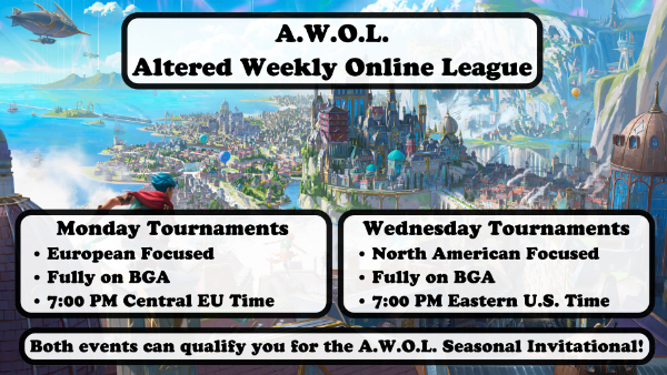 Each event covered six rounds of Swiss play. The Monday event was streamed with commentary by Blue and Runefolk. The Wednesday event was streamed with commentary from Blue and TheKelonGuy. Each week, the first and second-place players receive a booster pack, and each player who places in the top 16 receives an invite to the Seasonal Invitational, where an additional two booster boxes are available across the prize pool.