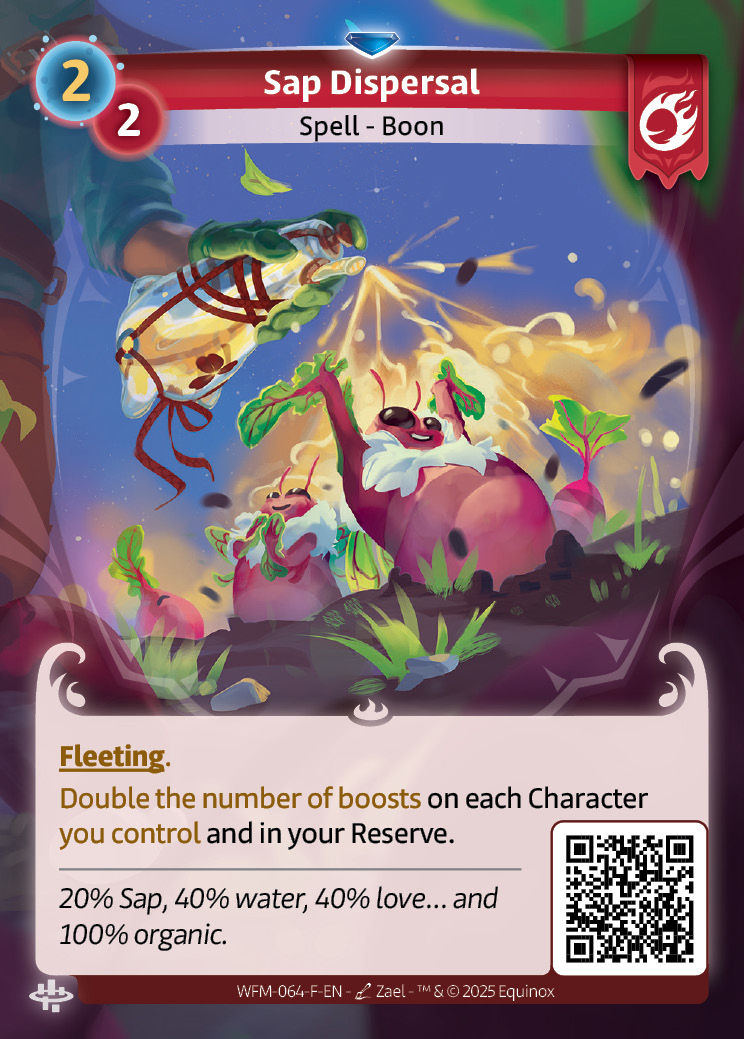 Our next card is a Muna boon spell that gives all your characters in reserve a boost. I’m expecting a minor rules amendment to allow boosts on characters in reserve other than Seasoned characters as usually that was the only way you could get this effect previously. The rare doubles boosts on all your characters in play and reserve. For two mana that’s pretty good. Even better, the OOF rare is in Bravos and I know that Basira decks will love this!