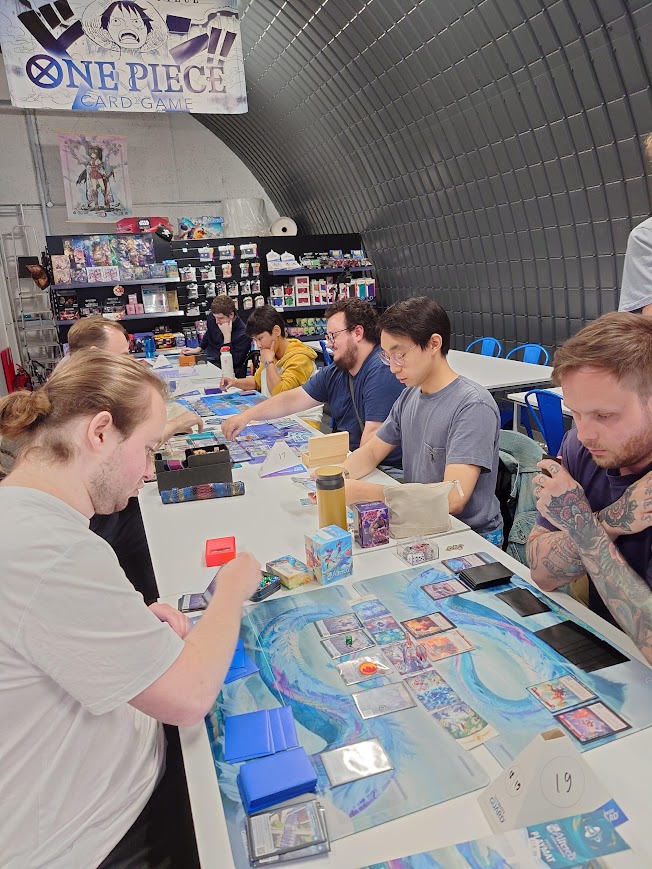 The turnout unfortunately at Meeples and Mulligans in Kimberley, Nottinghamshire was only 6 brave heroes. However, that didn’t dampen the spirit, and everyone had a great time there. As there were fewer than 8 people, they didn’t end up having a top cut, with just three rounds of Swiss, the player who got the 3-0 was Tumult Champion.
