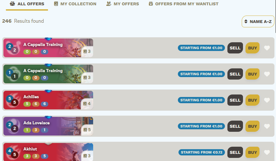 Buying cards happens on either the All offers or Offers from my wantlist tab. Checking your wantlist for offers is the easiest way to complete your collection so don’t forget to check that tab as well!