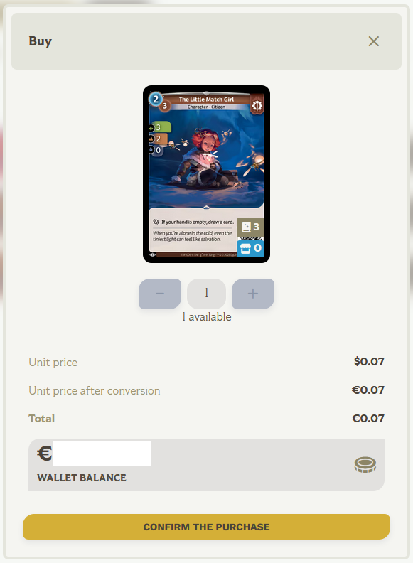 Buying cards on the Altered marketplace is even easier than selling them and can be done in a few seconds. Unless you are looking for that perfect Unique for your deck that is! For Uniques you will need to go into each one listed to see the details, which can be time consuming.