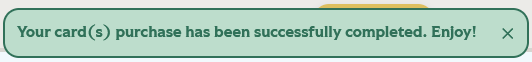 Click Confirm the purchase and you will get a message about the successful purchase: