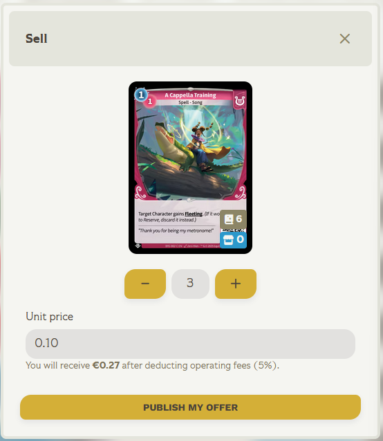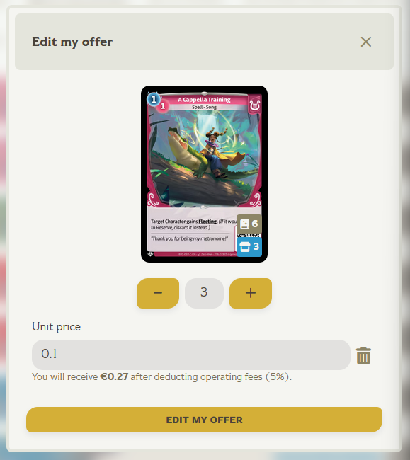 Listing cards on the Altered marketplace is really easy and can be done in a few seconds.