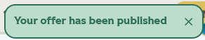 Click Publish my offer and you will see a success message: