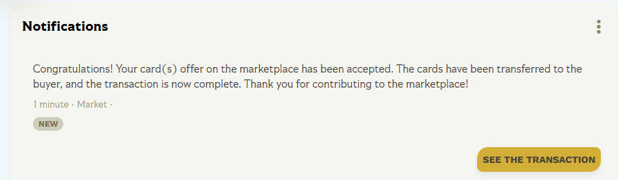 Once a card in your listings is sold you will also get a notification about the sale: