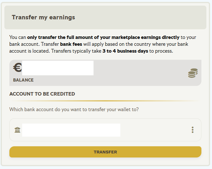 Here you can transfer the full amount of your earnings to bank account for a fee.