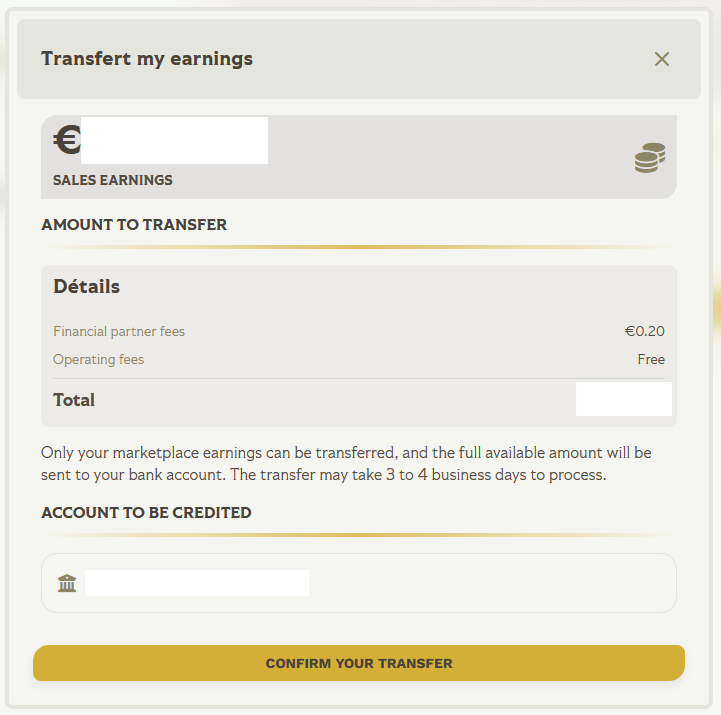 Click Transfer to proceed to the Transfert my earnings dialogue: