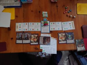 With those changes all reprinted I was ready next day for the second test. Going into the test I was worried that Sierra would still be too strong for the scenario. The first event out though gave the deck a real battering and I think its probably a bit too strong in its current form. This is the one main change coming out of this test, scaling the Expanding Terror depending on how many days you’ve had. Seeing the writing on the wall for Day 1, I chose to get out a Brassbug Hub instead and set up.