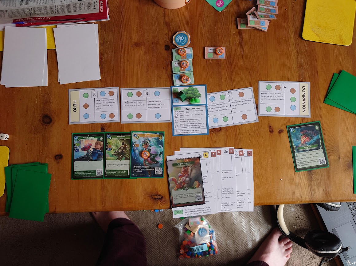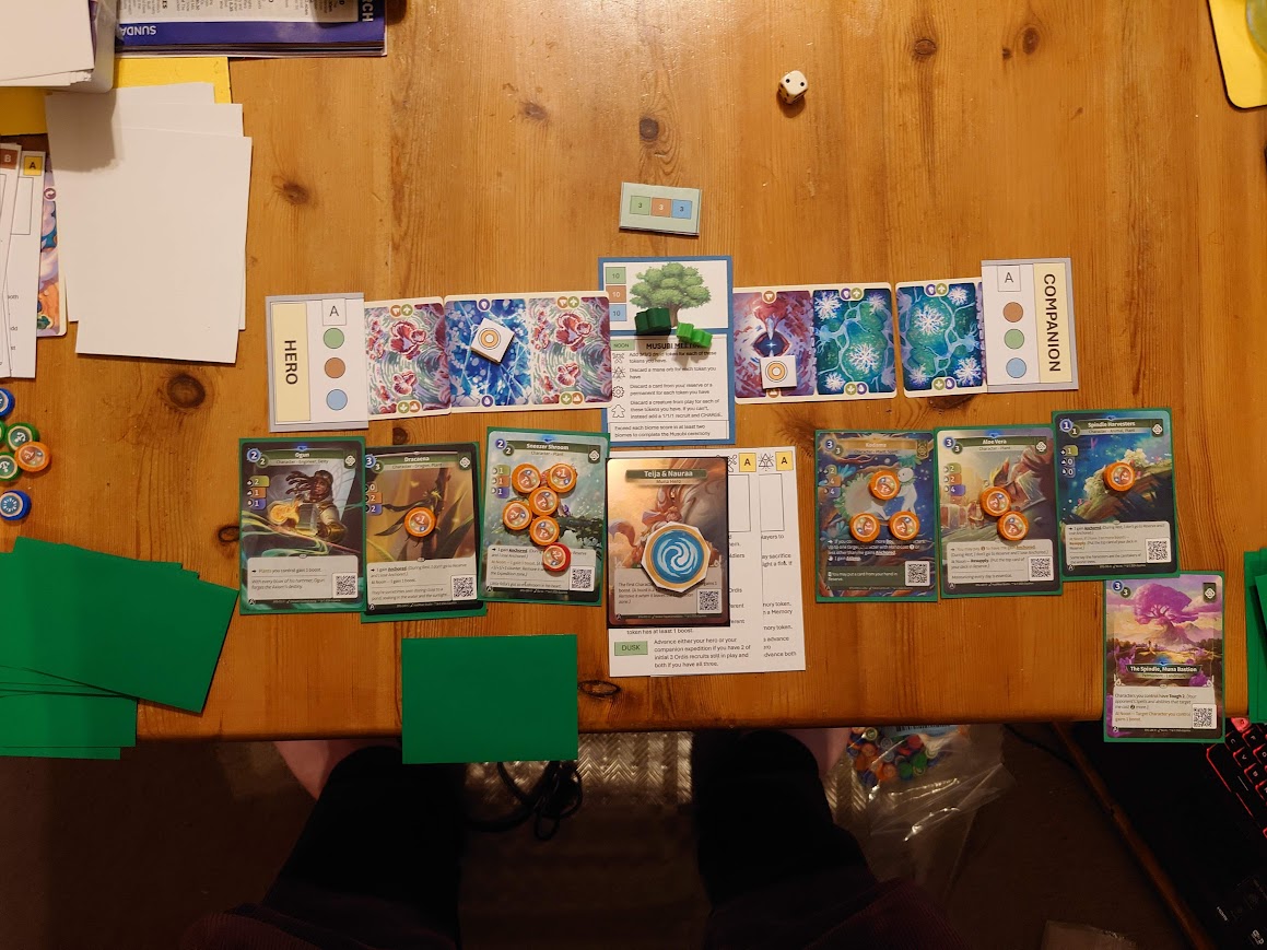 • Create a fun solo immersive experience for an Altered player in 45 minutes or less – Mostly MET. The Muna games were more around an hour to play as the decks took longer to get going. It’s not way out, but it’s worth noting that it’s a little longer than I want and may need further looking at.