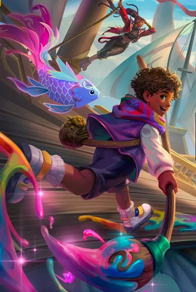 The Lyra hero seems to be a young boy with a flying fish companion. He has a broomstick that seems to be able to paint things. Now the multi-coloured paint is reminiscent of Nevenka’s spray cans, however I see this character being less rebellious than Nev and more out for fun. As to his ability, I have no idea but being Lyra it kind of needs some random element to it.
