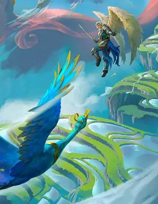 The flying knight is reminiscent of Bellerophon from Greek mythology; however, I would expect the hero to be their own character within Altered instead. He has his own wings instead of riding a Pegasi, their companion is a huge flying bird, indicating that they really tied into something to do with flying. Now flying in MtG is a combat ability, but I wonder whether it might give him an ability to turn to move a character between expeditions. This will make him have a more tactical ability.