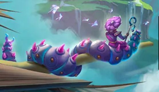 The Yzmir hero is wearing a hat similar to the one of the Yzmir Mothbreeder and so might have something to do with moths. His staff is a moth lantern and he’s surrounded by mana moths. Given that his companion is a giant caterpillar, which is the pupa stage for a moth I feel that there might be a connection here. I would guess he makes a moth therefore, but we may have to discover how that is triggered as a moth every turn would be too powerful.
