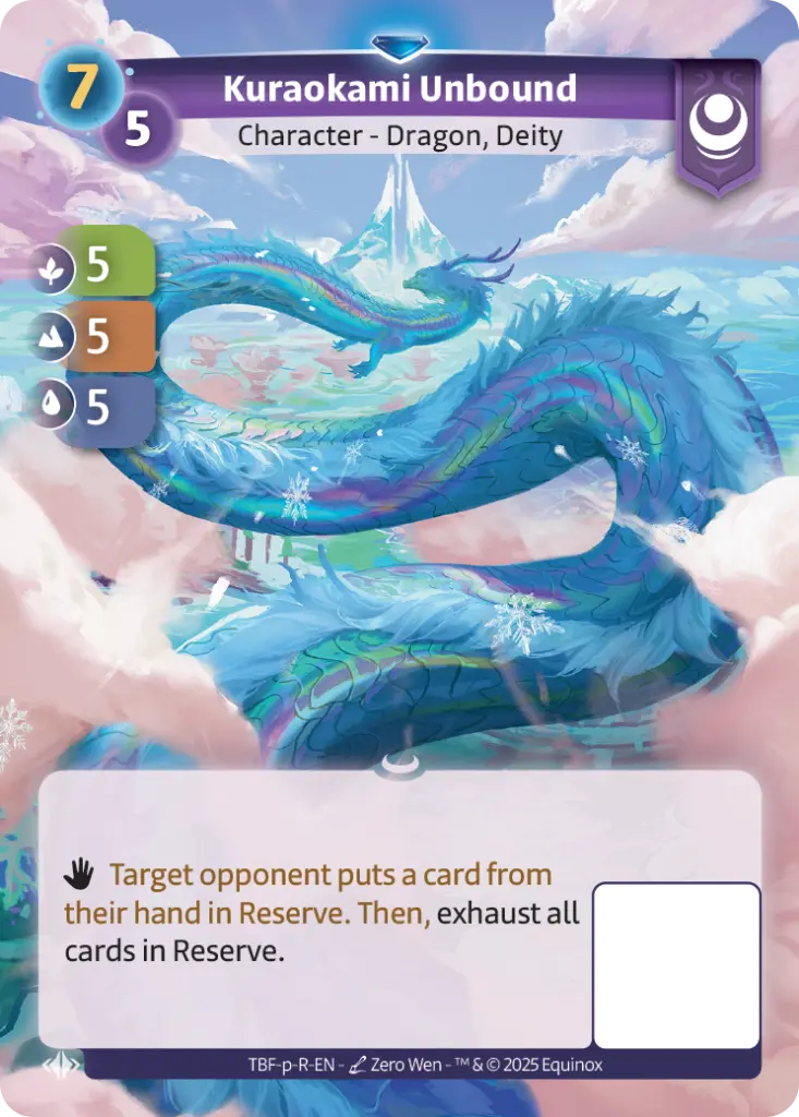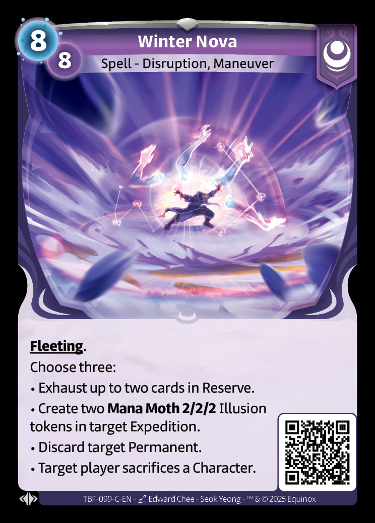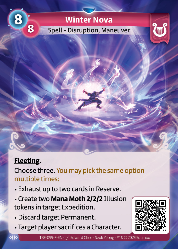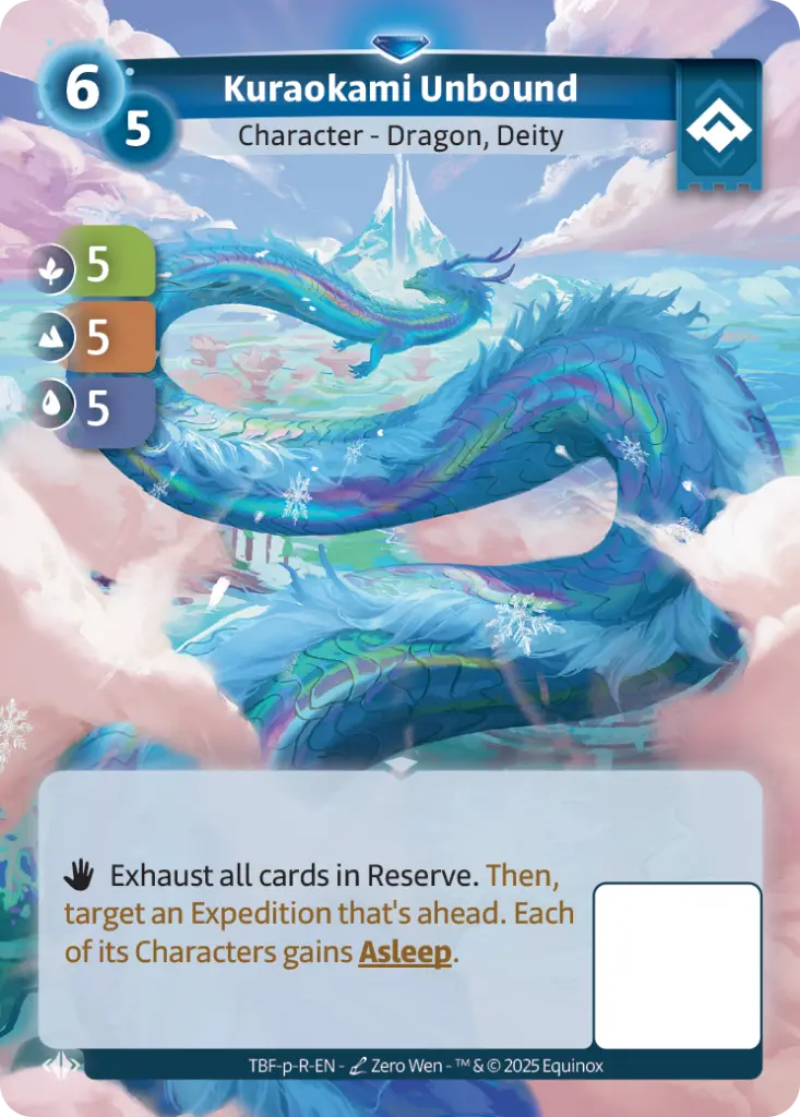 Trial by Frost was the first expansion for Altered TCG and contains 90 new cards (15 per faction) in common, rare and out of faction rare, for a total of 270 new cards, not counting the uniques. The set additionally has new-art token characters, two new token characters and two reprint heroes per faction.
